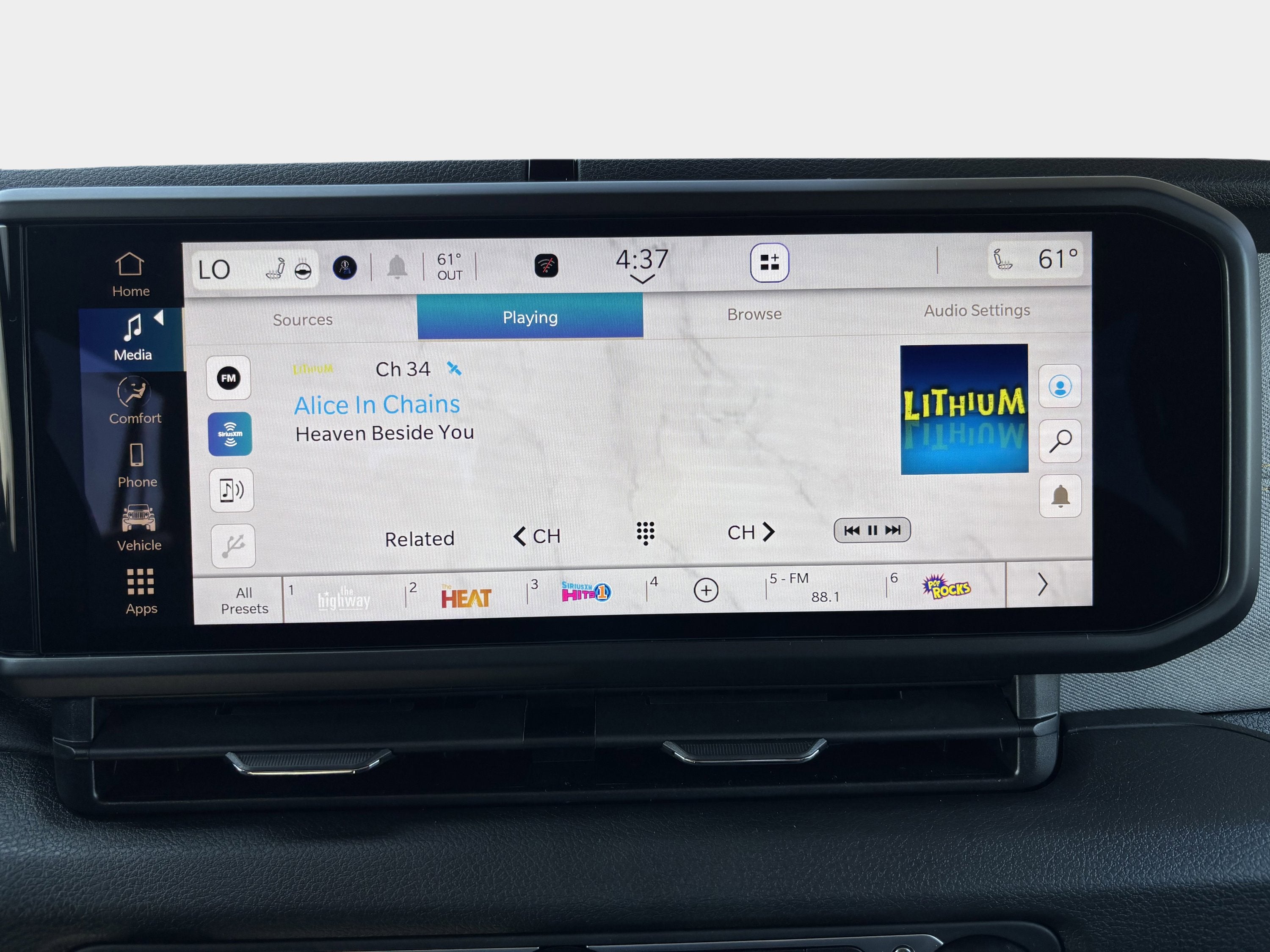 - Radio w/Seek-Scan, Clock, Speed Compensated Volume Control, Aux Audio Input Jack, Steering Wheel Controls, Voice Activation, Radio Data System and Uconnect External Memory Control
